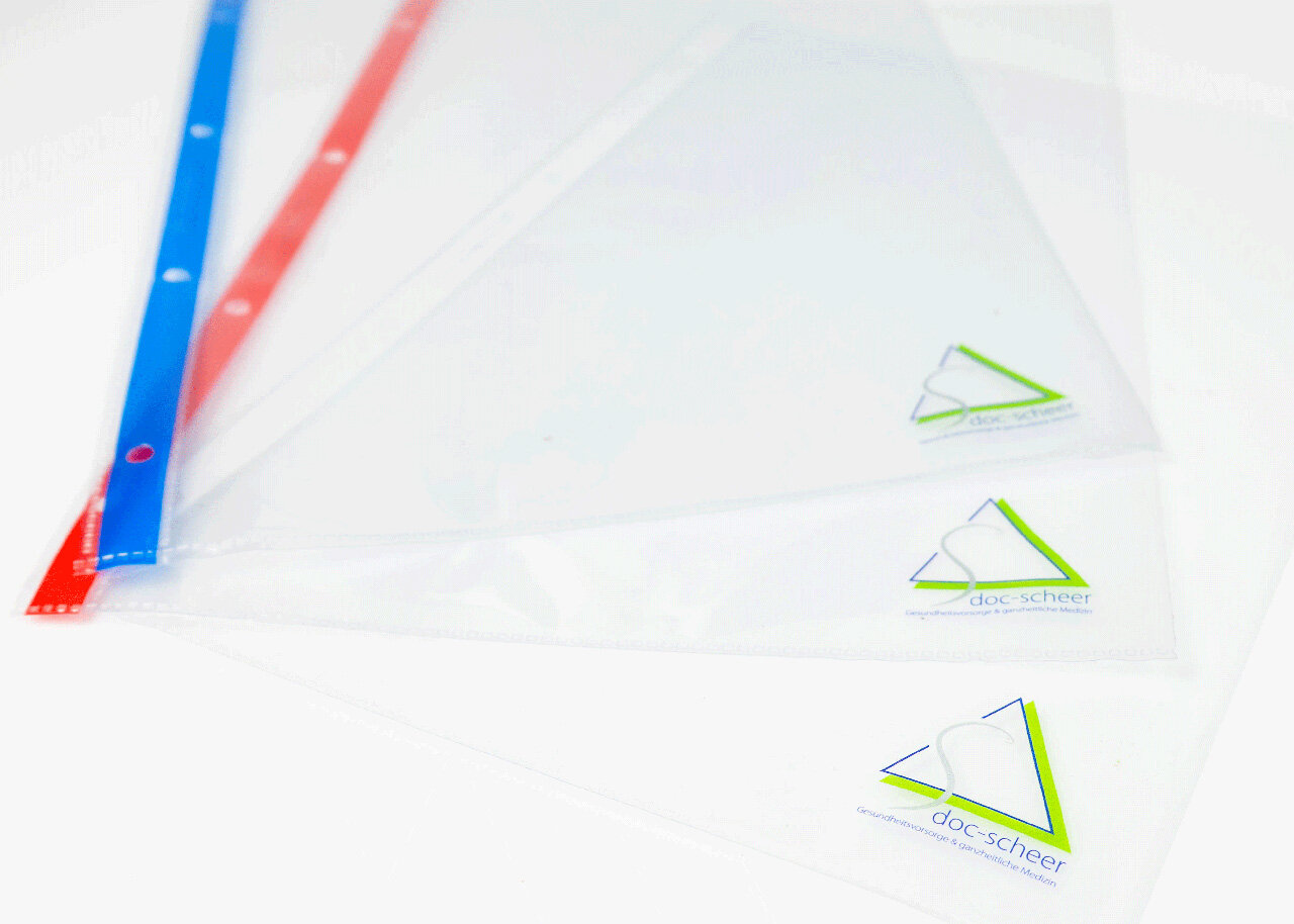 Nutzen Sie Ihre Hüllen als Präsentationsfläche für Ihre Marke: Mit personalisierbaren Druckoptionen statten wir Ihre Produkte mit Firmenlogo, Slogan, Farbwelt oder Layout aus. Ideal für den professionellen Einsatz im Kundengespräch, bei Messen oder im Außendienst: Bedruckte Präsentationsmappen, Sichttaschen mit Logo oder Ausweishüllen in Unternehmensfarben machen aus jedem Standardprodukt einen sympathischen Markenbotschafter.